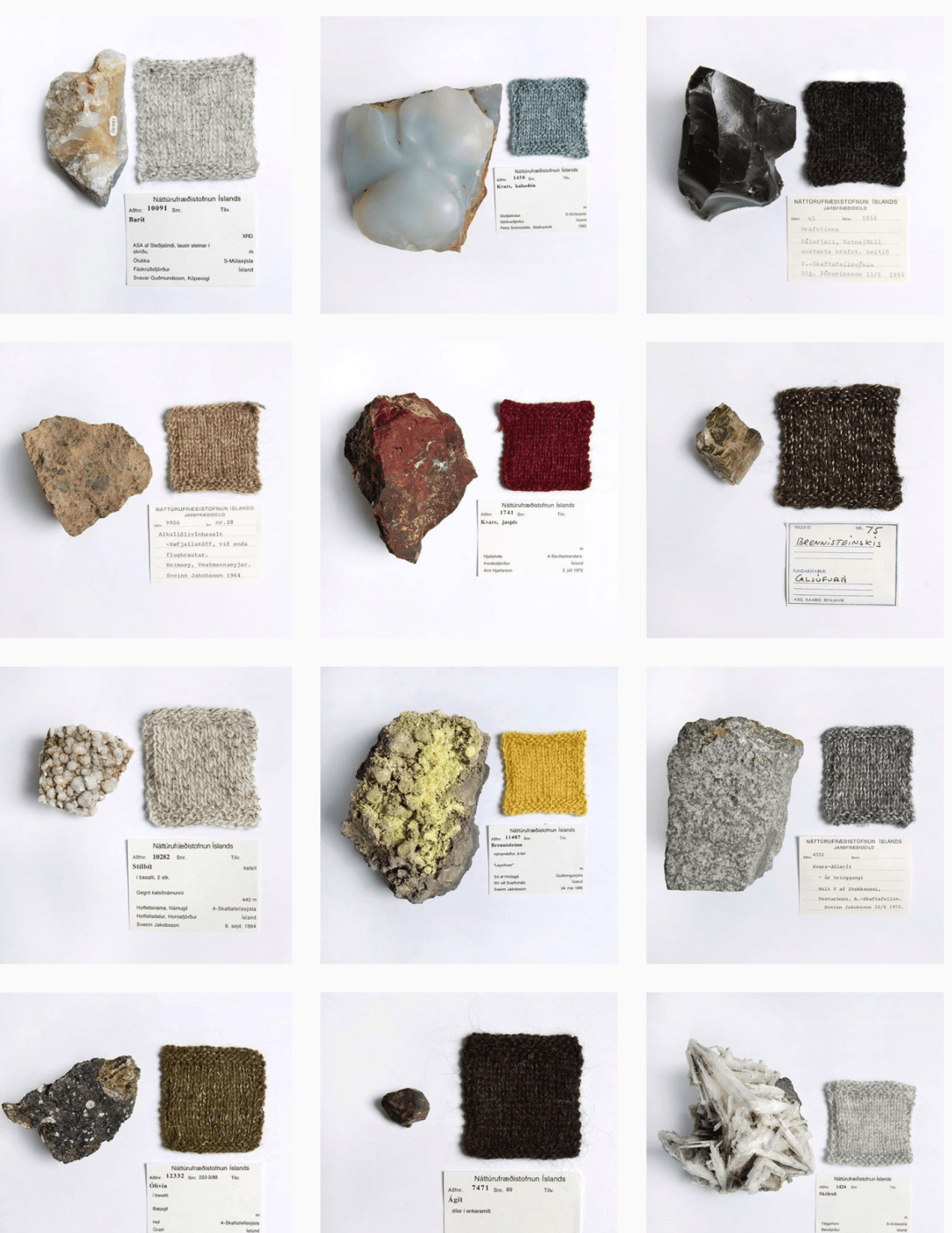 [ below is a knitting pattern inspired by Basalt rock columns. and there are examples of swatches inspired by specific Icelandic geology]
